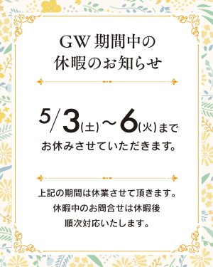 GW期間中の休暇のお知らせ