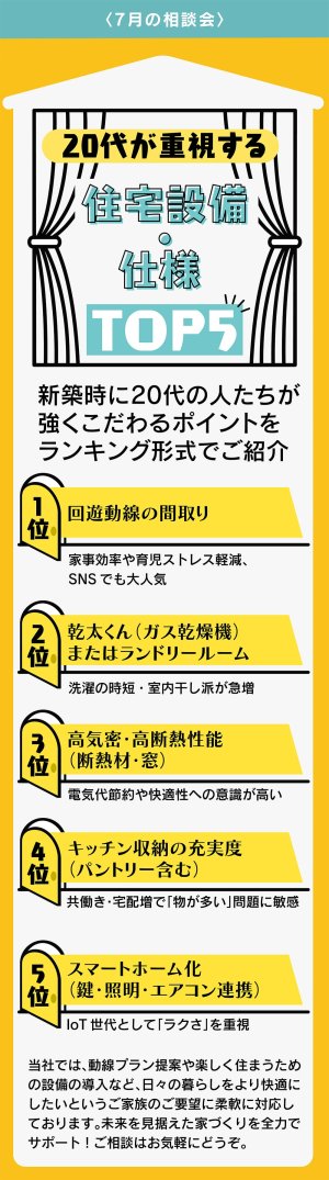 20代が新築時に重視する住宅設備・仕様をランキング形式で紹介。若い世代のこだわりポイントを把握し、理想の住まいづくりに役立てましょう。
